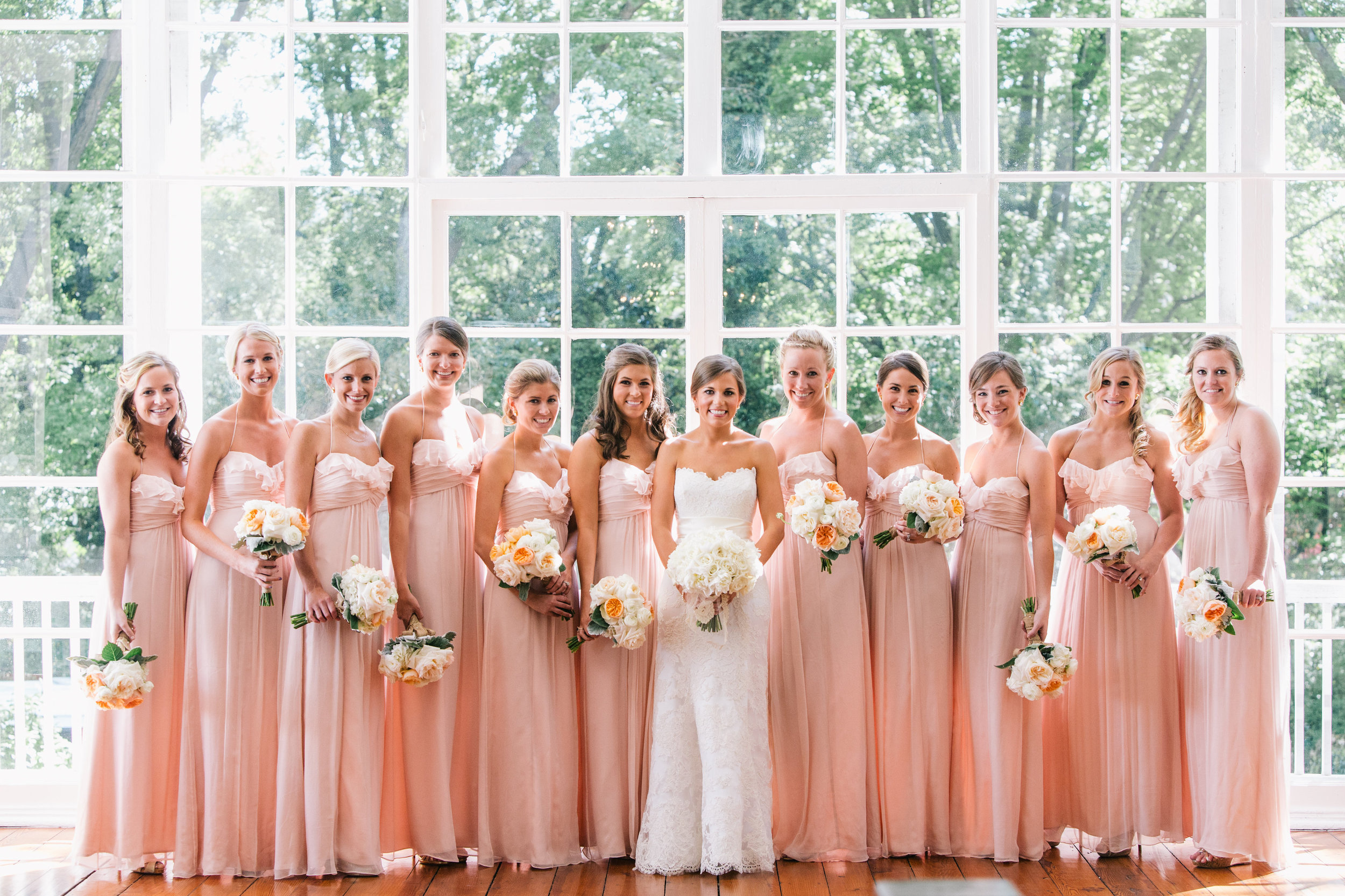 With 11 lovely bridesmaids and 6 handsome groomsmen, their wedding party was one of the largest I've had in awhile! They were so fun! Groom, Phillip, and his gents got ready at the Ritz Carlton Buckhead. The Ritz offers a super fun event called Bourbon and Bowties for gentlemen monthly and was good enough to host a private B&B event just for them! They were treated to samples of different bourbons and then given a lesson on how to tie their own bowties. How fun is that?!