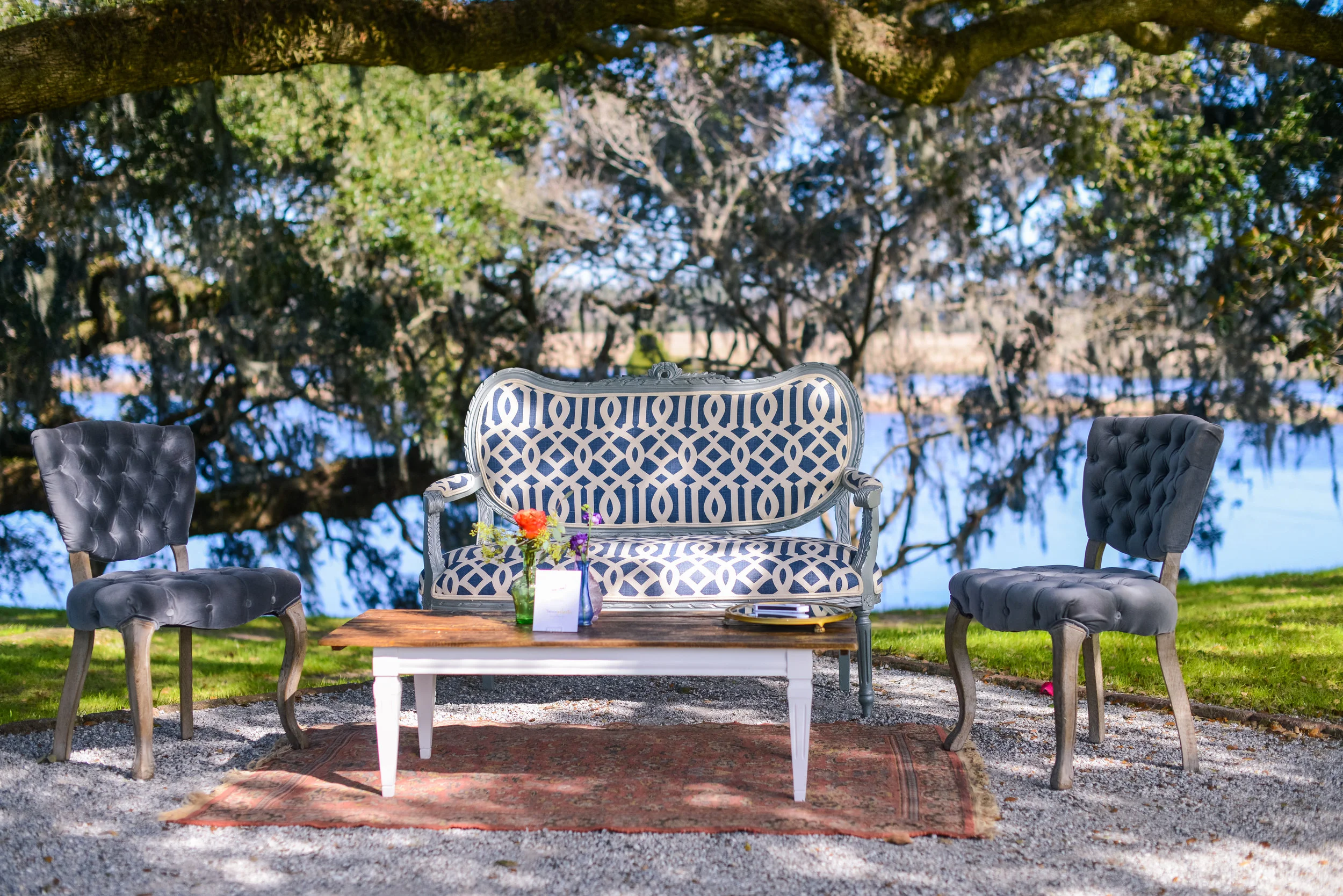 The Octagonal Garden at Middleton was the PERFECT spo to put up the naked tipi tent from Indah Events along with some of the raddest vintage furniture we've ever seen! The French Eclectic is one of the newest rental companies in Charleston and boasts some of the most incredible vintage furniture rental finds in the Holy City. From colorful couches, rad side chairs, kick ass salvaged dressers and bars, smaller decor items and killer rugs to one-of-a-kind hand built pieces, they're bound to have exactly what you're looking for! Not to mention the brilliant duo and masterminds behind TFE, Theresa & Katie, are probably the coolest chicks in the land and our fave friendors around!