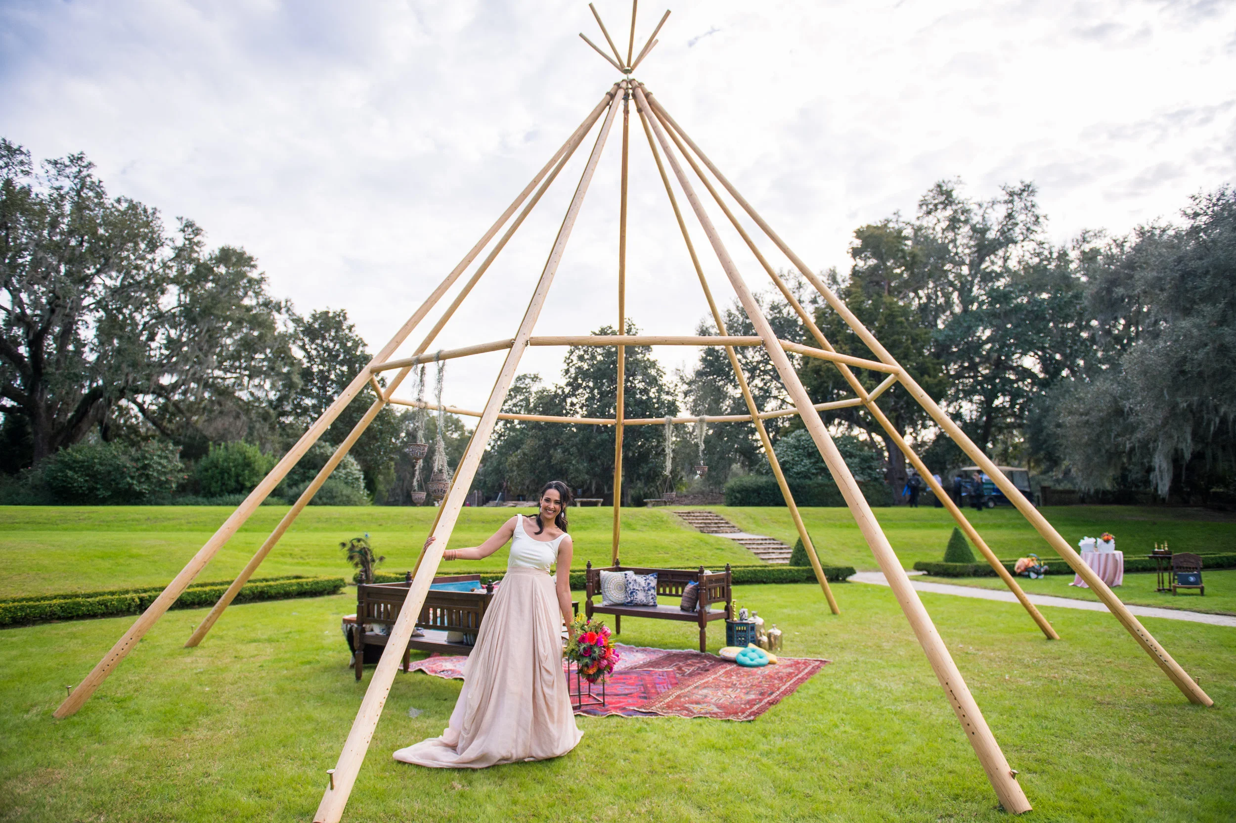 Event: Revolution Wedding Tours | Planning, Design + Styling: Scarlet Plan & Design | Photography: Molly Joseph Photography | Videography: Caleb Suttles Weddings | Vintage + Specialty Rentals: The French Eclectic | Tipi Rentals: Indah Events | Venue: Middleton Place | Florals: The Flower Cottage | Henna Art: Naz | Photobooth: Little White Box | Band: Tell Scarlet | Music + Lighting: Bunn DJ | Bridal Gown: Southern Protocal | Jewelry: Modern Trousseau Charleston | Hair + Makeup: Wild Ivory Beauty | Invitations: Boxed Wedding Invitations | Signage: Paper & Pine Co. | Transportation: Lowcounty Valet & Shuttle | Linens + Rentals: Event Works | Specialty Linens: Ultrapom | Cake + Desserts: Vintage Soul Cakes