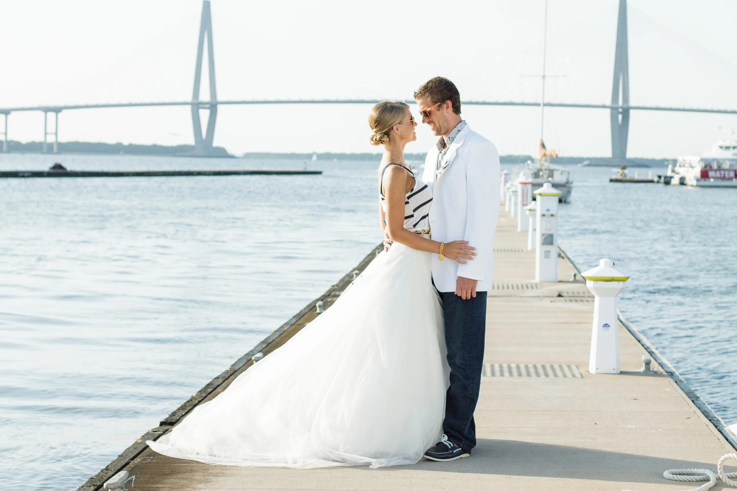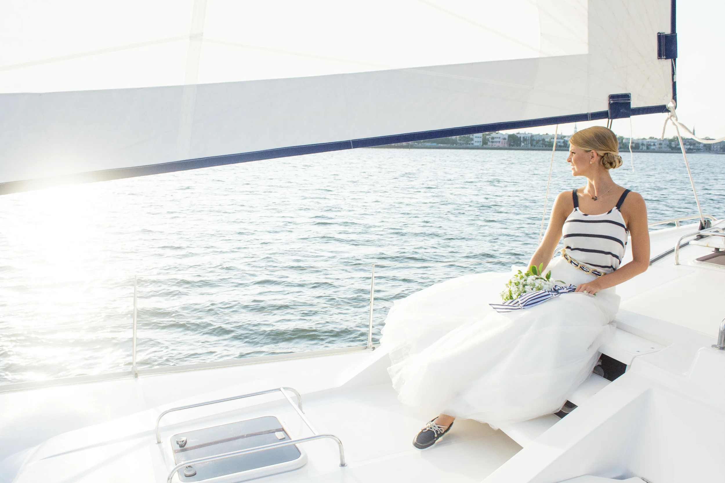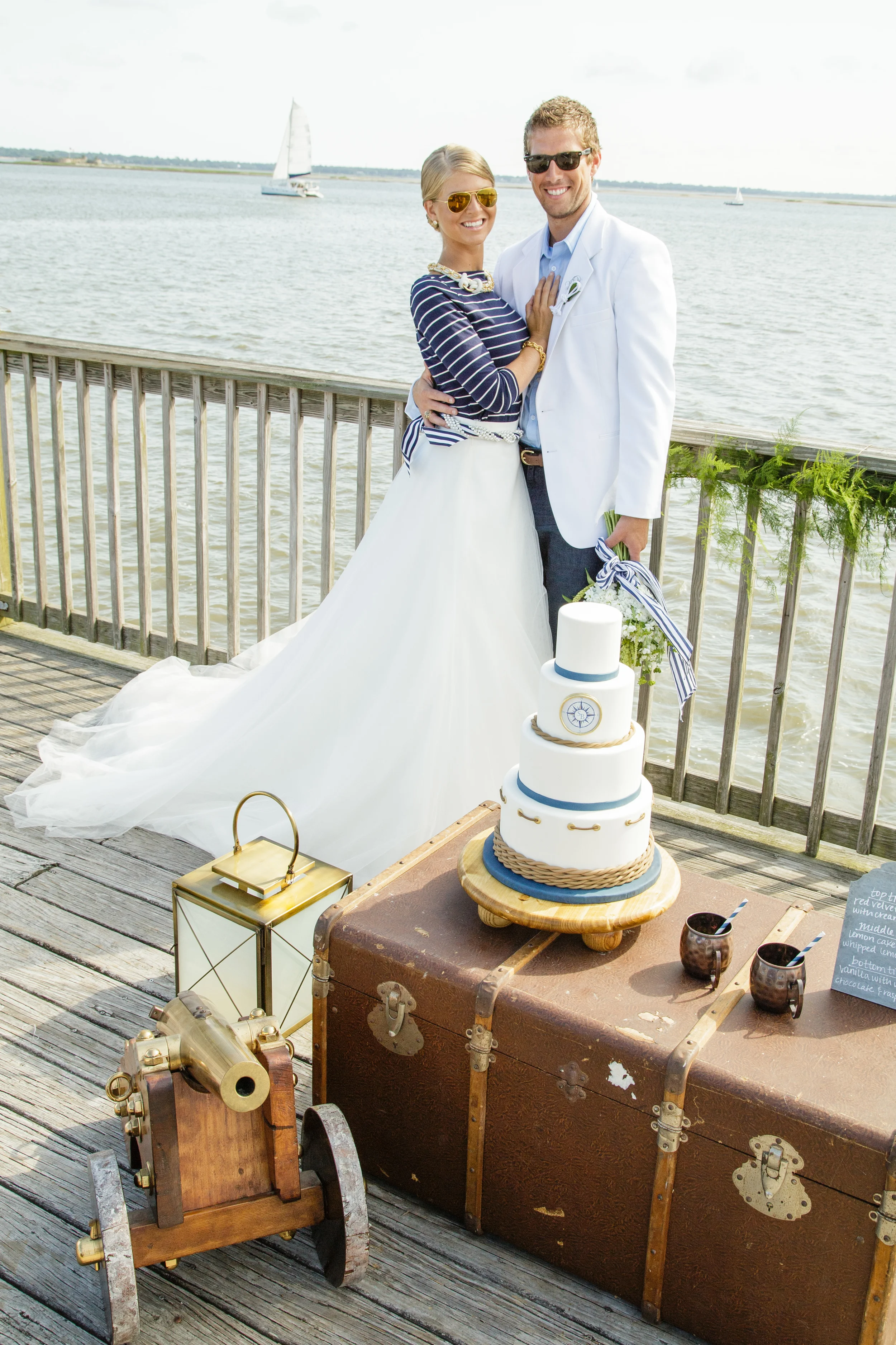 Shoot Design & Coordination :: Sara Skinner with Regis Byrd of Scarlet Plan & Design | Photographer :: The Click Chick Photography | Venue :: Charleston Harbor Resort & Marina | Accessories :: Simply Southern Wedding | Accessories & Home Decor :: C. Wonder (now closed) | Cake :: Delicious Desserts | Boat :: The OM Sailing Charter | Bridal Attire :: designed by Sara Skinner of Scarlet Plan & Design, (skirt) Gown Boutique of Charleston, (top) Target | Bridesmaid's Attire :: LulaKate | Catering :: On site by CHRM | Customized Dockers :: Sperry Topsiders | Florist :: On A Limb Floral Design | Groom's Attire :: (jacket) Charleston Tuxedo | Linens :: Ultrapom | Makeup :: Hana Mohalo | Hair :: Hair by Takeshia | Live Sketch Artist :: C. Ellis Designs | Oyster Knives :: Custom Coastal Knives | Rentals :: Snyder Events | Stationery :: The Silver Starfish | Styling & Jewelry Curating :: Alden deHart for Scarlet Plan & Design | Vintage Trunk :: 428 Main | Welcome Bag :: A Signature Welcome