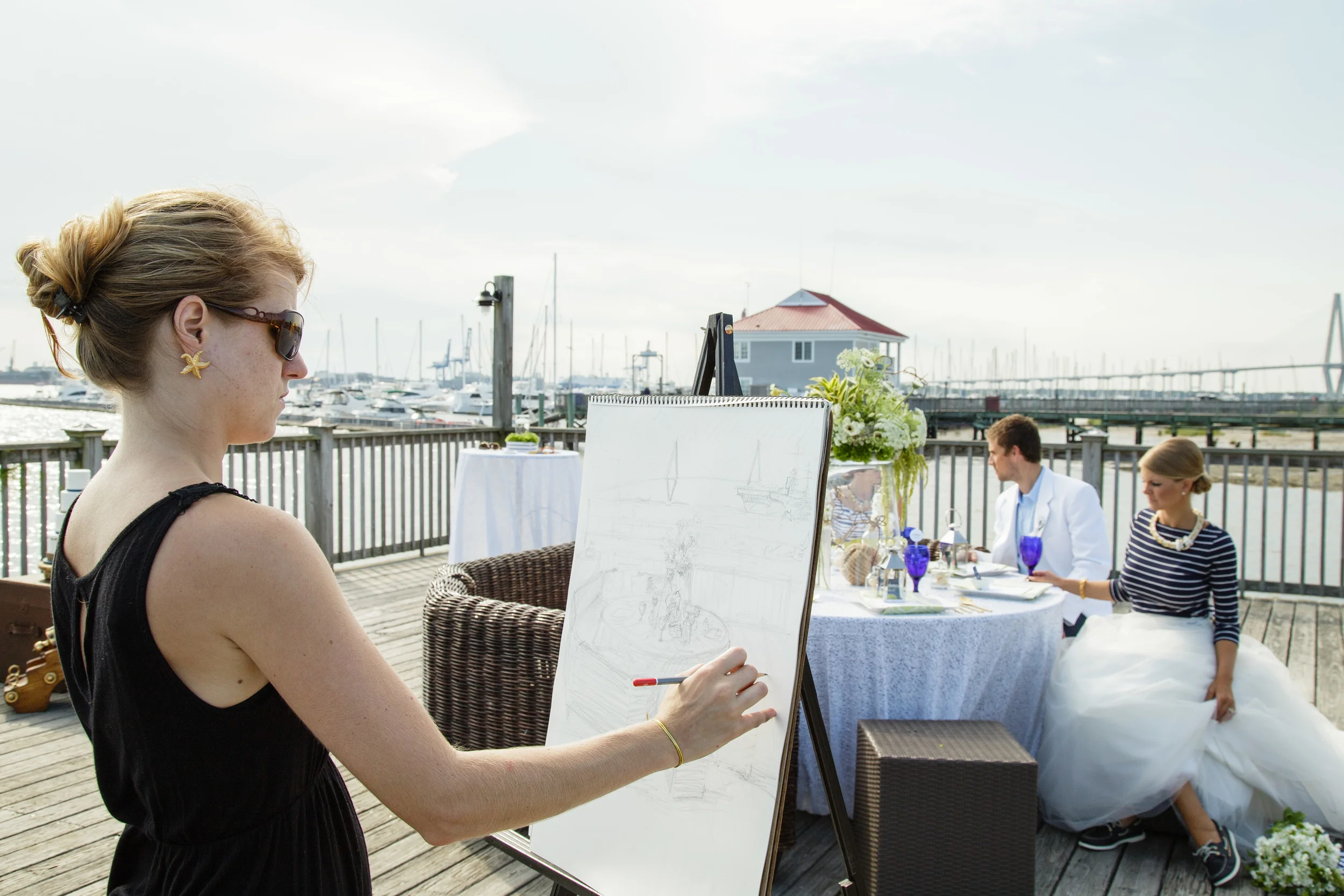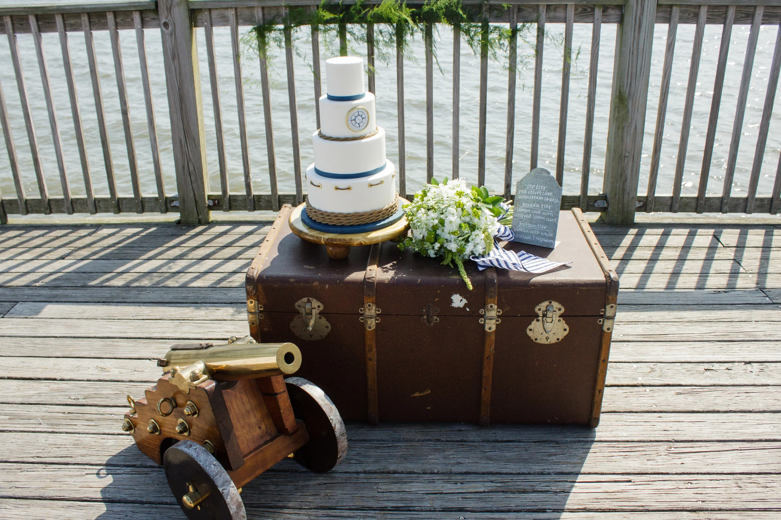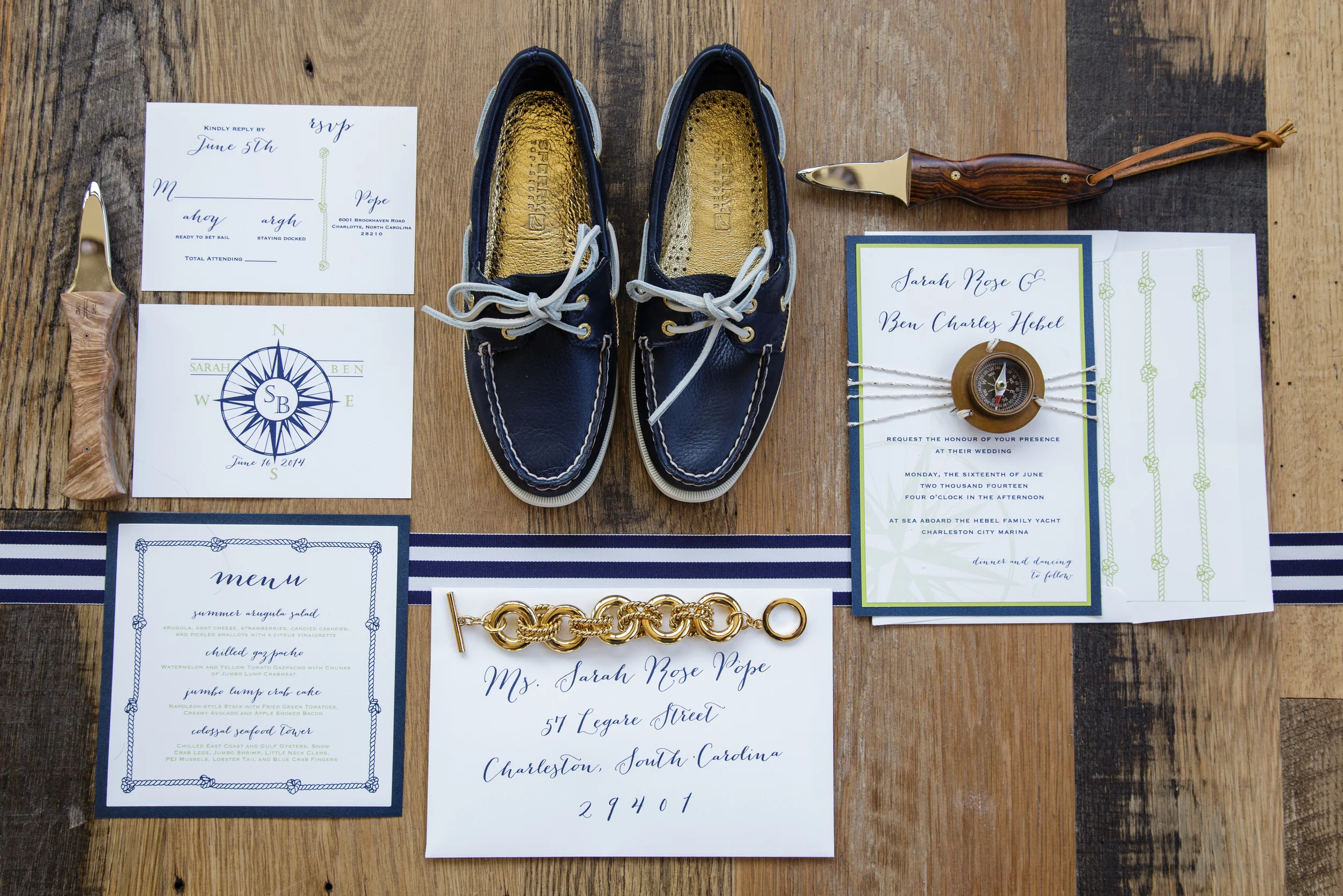 Shoot Design & Coordination :: Sara Skinner with Regis Byrd of Scarlet Plan & Design | Photographer :: The Click Chick Photography | Venue :: Charleston Harbor Resort & Marina | Accessories :: Simply Southern Wedding | Accessories & Home Decor :: C. Wonder (now closed) | Cake :: Delicious Desserts | Boat :: The OM Sailing Charter | Bridal Attire :: designed by Sara Skinner of Scarlet Plan & Design, (skirt) Gown Boutique of Charleston, (top) Target | Bridesmaid's Attire :: LulaKate | Catering :: On site by CHRM | Customized Dockers :: Sperry Topsiders | Florist :: On A Limb Floral Design | Groom's Attire :: (jacket) Charleston Tuxedo | Linens :: Ultrapom | Makeup :: Hana Mohalo | Hair :: Hair by Takeshia | Live Sketch Artist :: C. Ellis Designs | Oyster Knives :: Custom Coastal Knives | Rentals :: Snyder Events | Stationery :: The Silver Starfish | Styling & Jewelry Curating :: Alden deHart for Scarlet Plan & Design | Vintage Trunk :: 428 Main | Welcome Bag :: A Signature Welcome