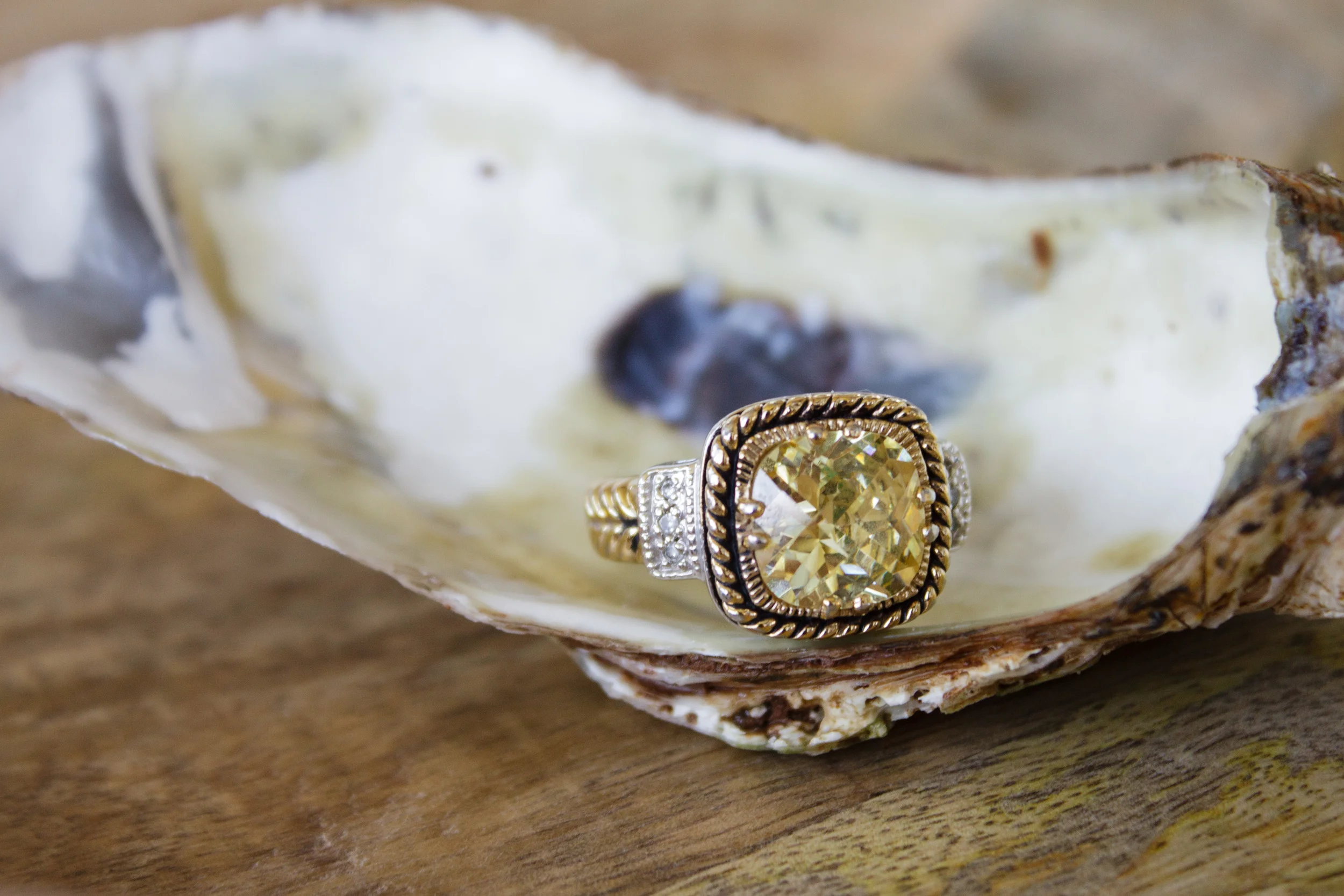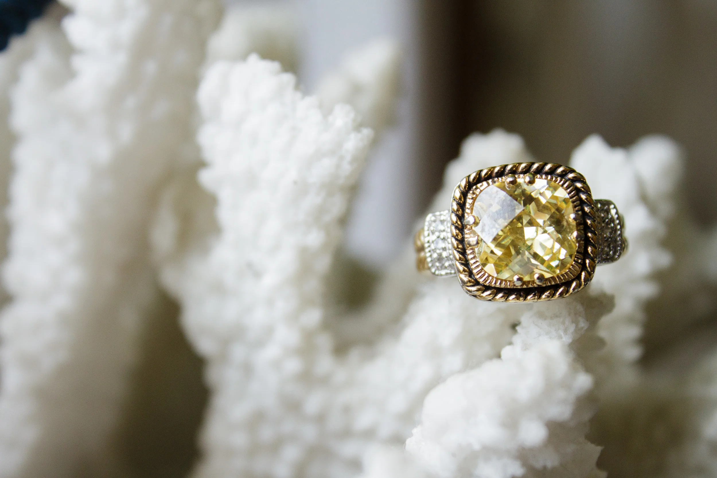 Ah, the details...the stunning engagement ring with the citron stone was on loan from a private collection and is unavailable for purchase at this time (insert sad face here!), but everything else seen here can be yours! All jewelry was curated by Bridal Stylist Alden deHart for our shoot and can be yours simply by booking her services! See our Styling page for more info.