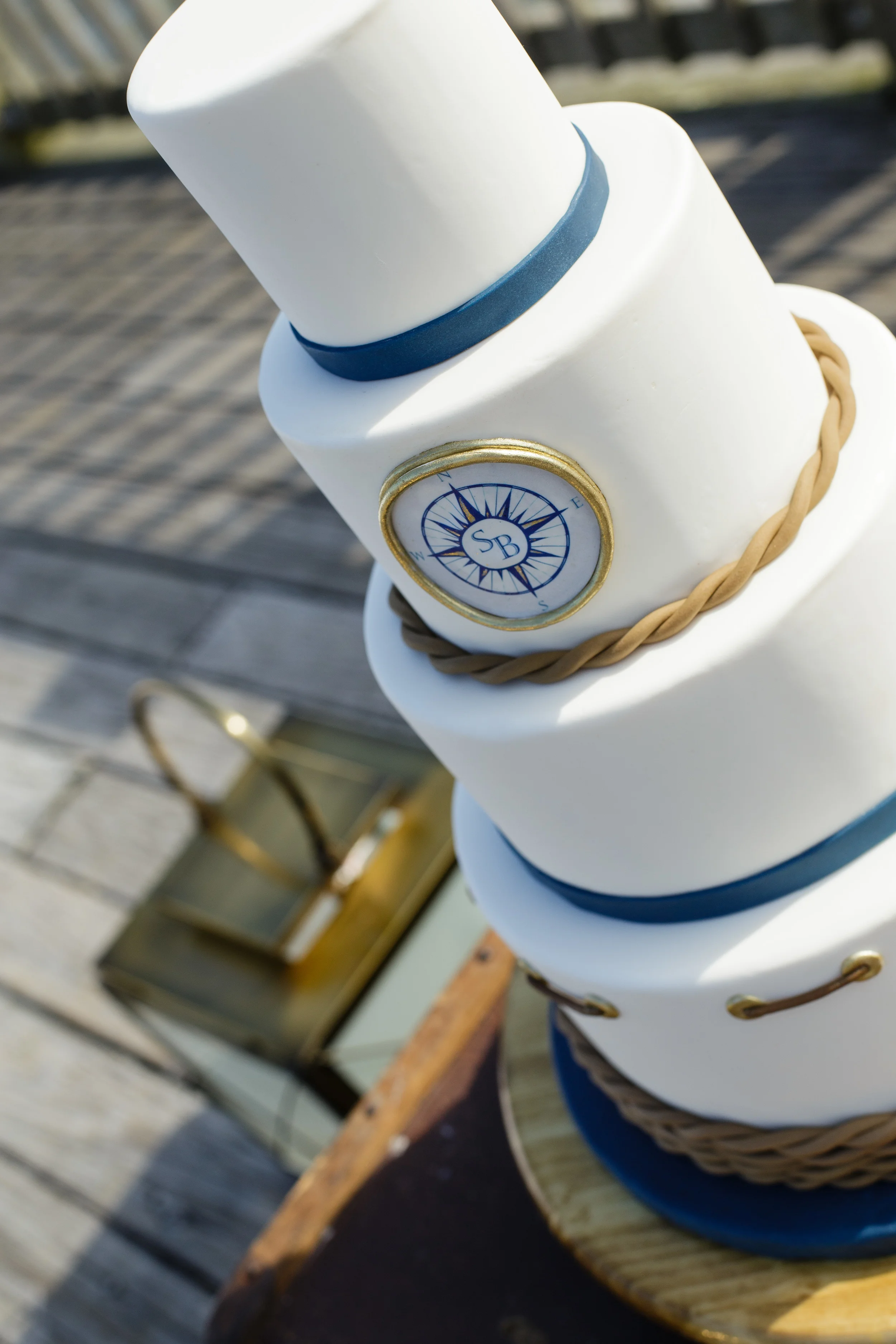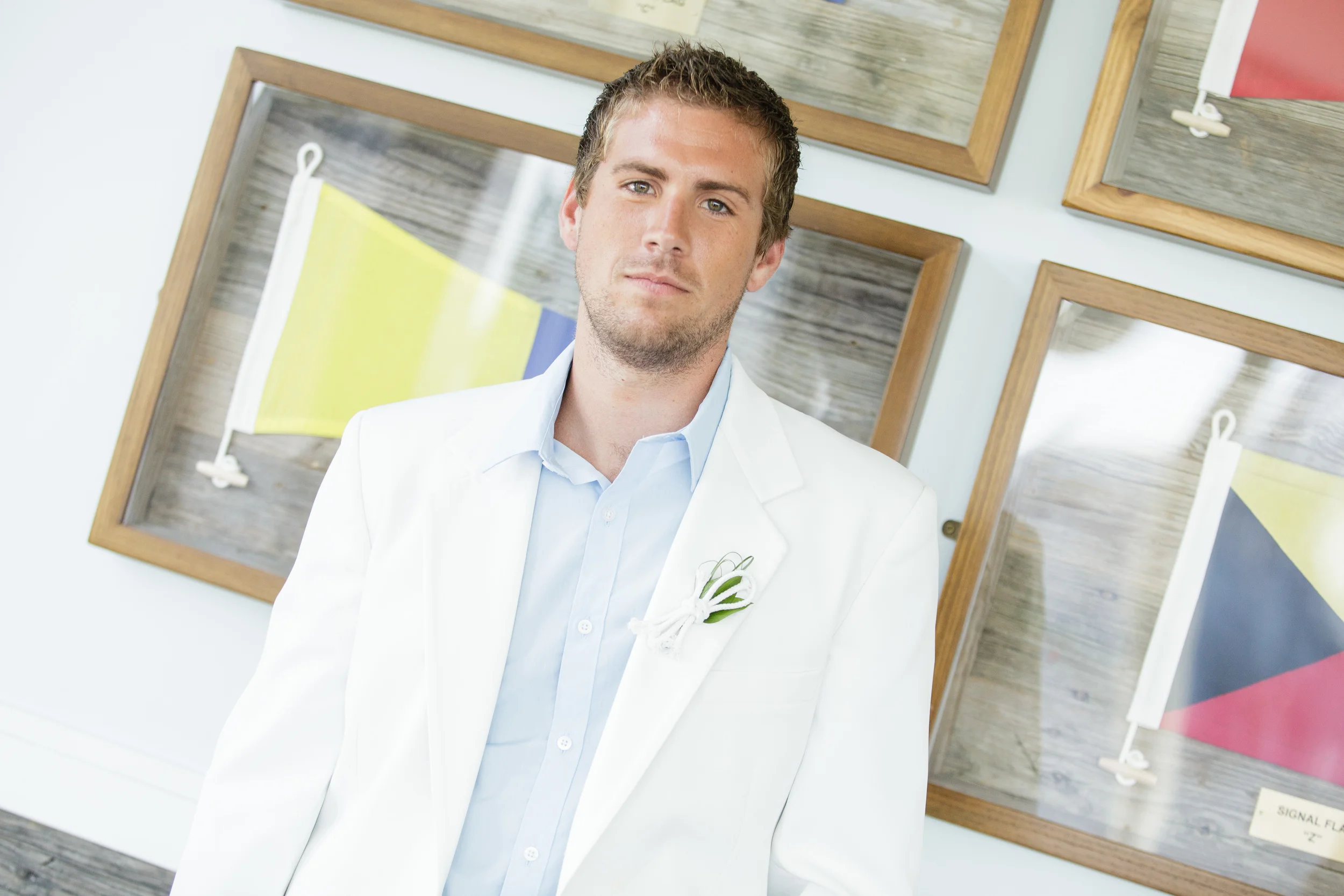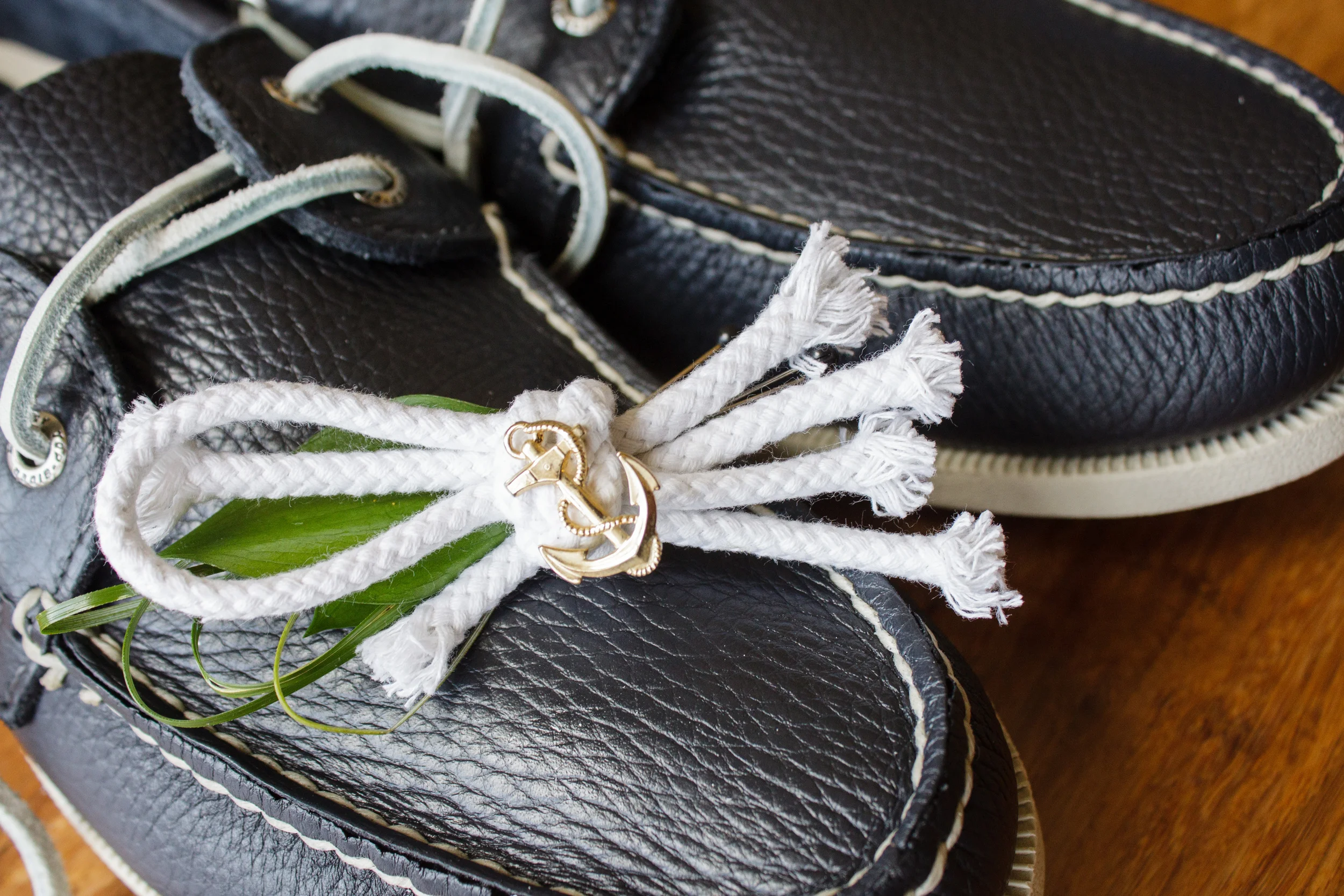 We opted to skip the traditional flower boutonniere and use a nautical knot instead. Believe it or knot (see what I did there? ha!) that gold anchor is an earring!