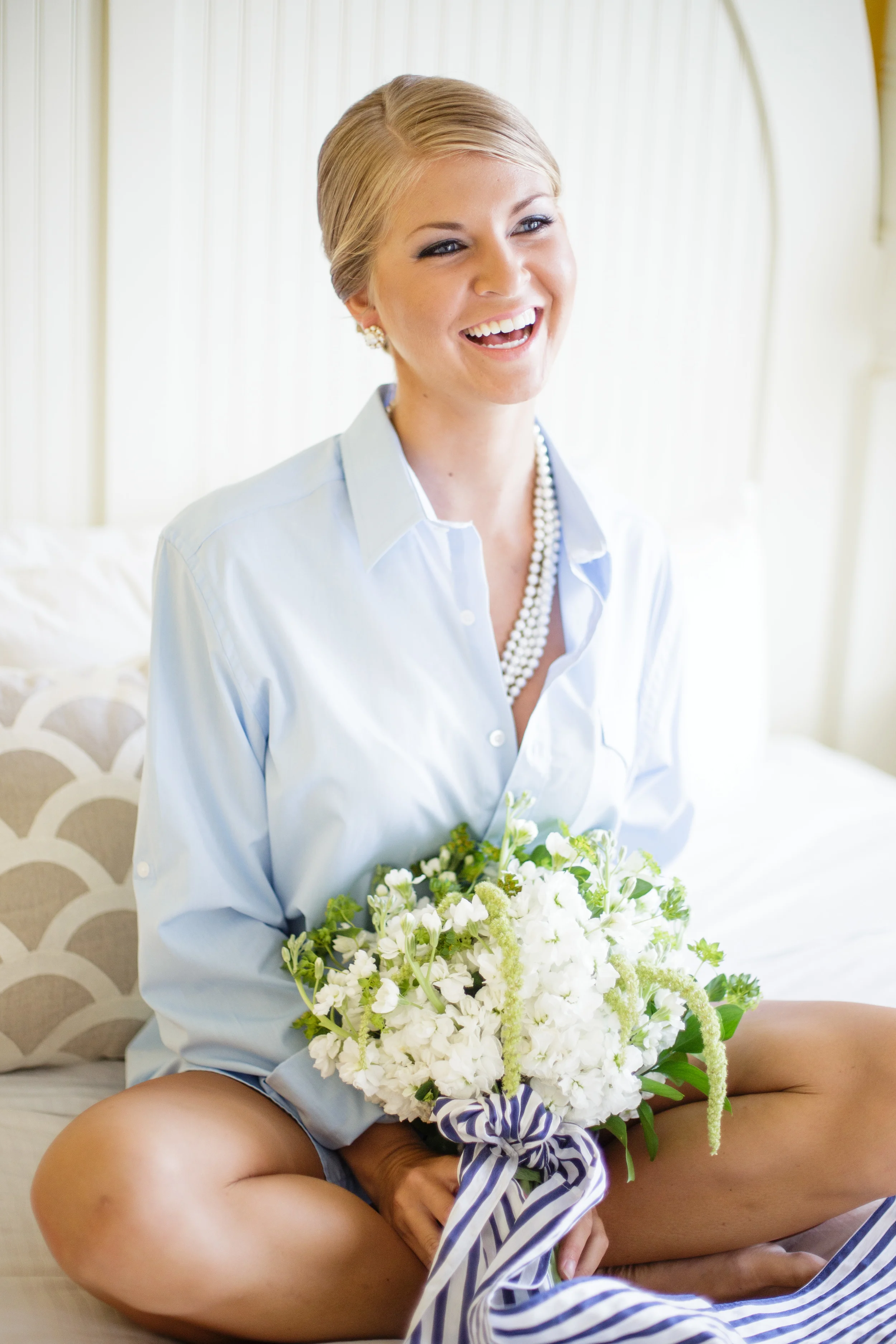 The morning of your wedding don't forget to bring one of your fiance's button down shirts to wear while you're getting your hair and makeup done and for all those sweet "getting ready" shots with your ladies!
