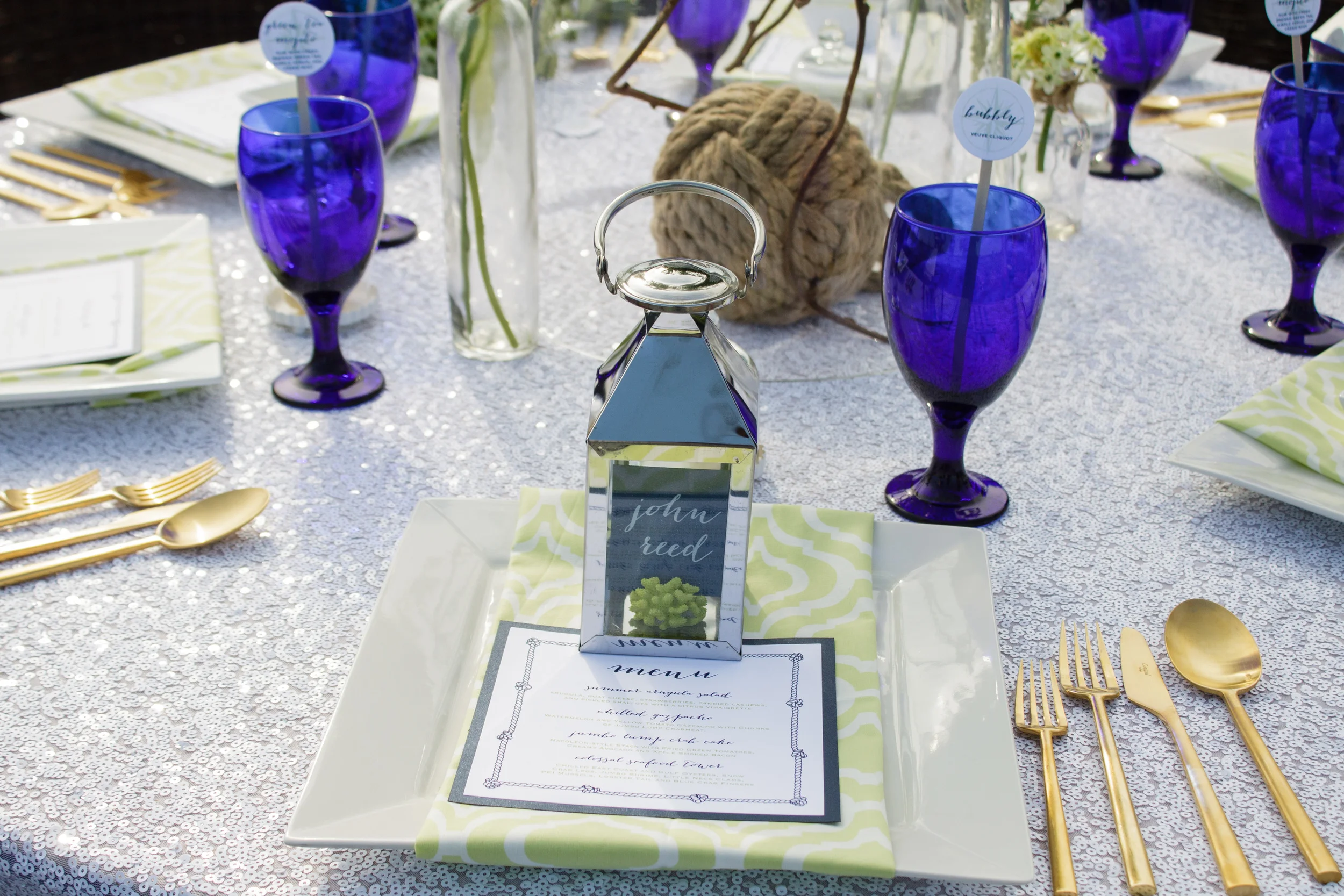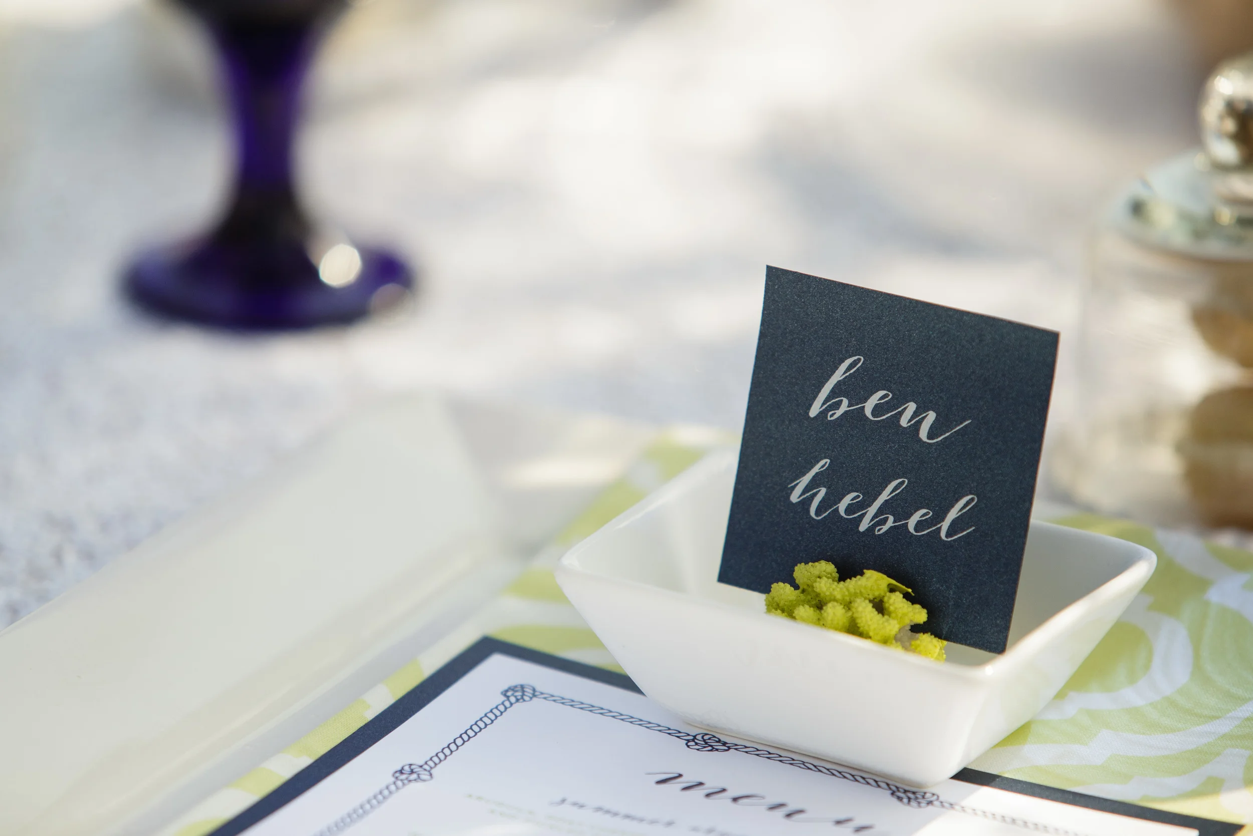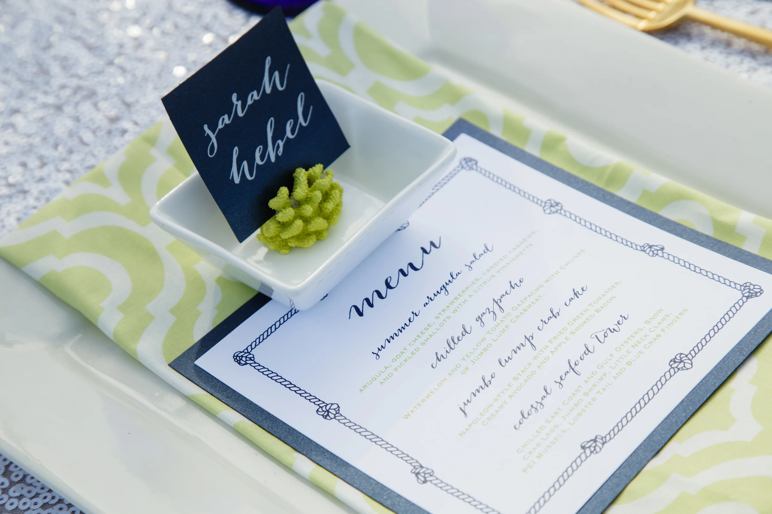 We started with the very nautical navy and white as our base colors in the palette and used a fun citron green and a deeper emerald green as an unexpected pop of color throughout the entire shoot. After the color choices were made we started assembling a team of awesome, creative vendors perfect for pulling off the incredible shoot we're about to share with you!